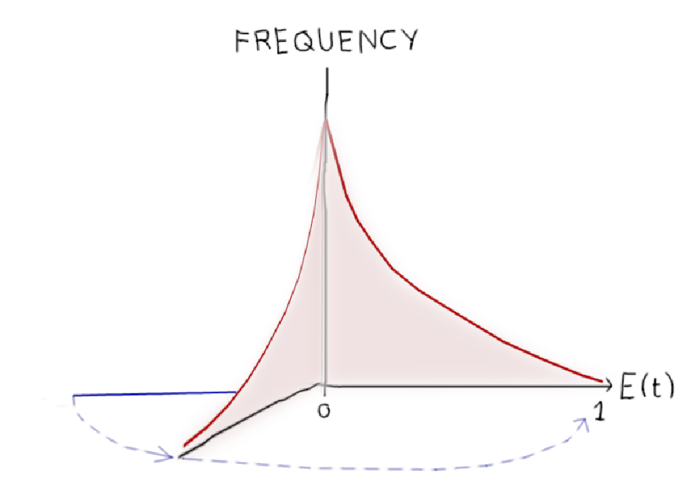 That’s disappointing, but hardly surprising — we looked at the mean value of a symmetric random signal and found nothing. What can we do instead? Well, we could look at the moments. Whats the dumbest way to do that? How about take the absolute value of $E(t)$, to “reflect” the x-axis onto the interval $[0, 1]$? Sounds good, and using abs instead of the square is a great way to annoy mathematicians.