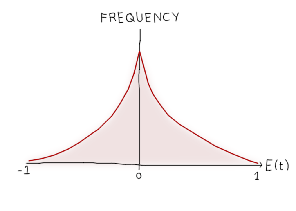 $E(t)$ can take values in the interval $[-1, 1]$, and if the fluctuations $U_i(t)$ are uniformly random, the distribution of $E(t)$ in that interval will be symmetric about zero. Therefore, in the limit of many repeated measurements, the mean value of $E(t)$ will always be zero — the mean teaches us nothing.