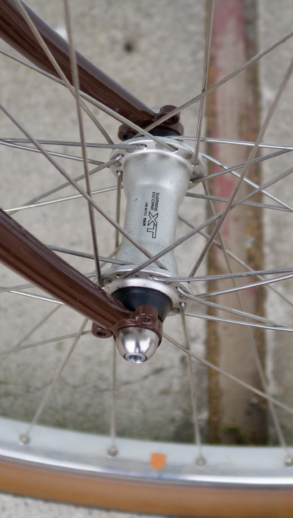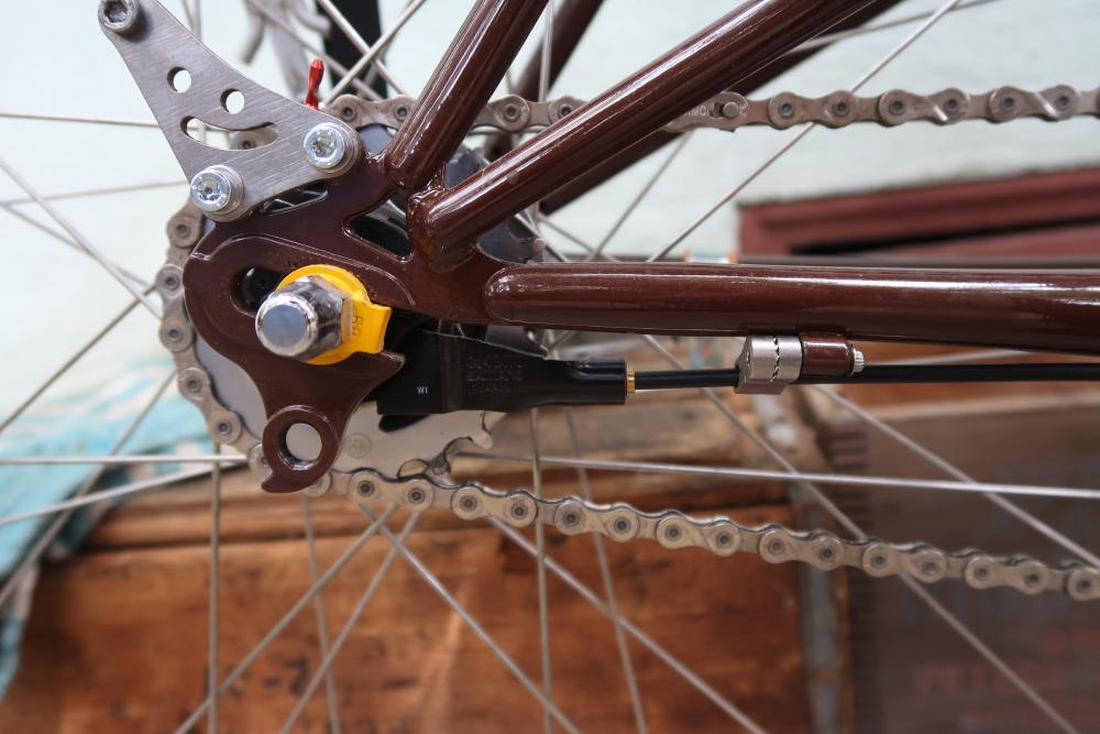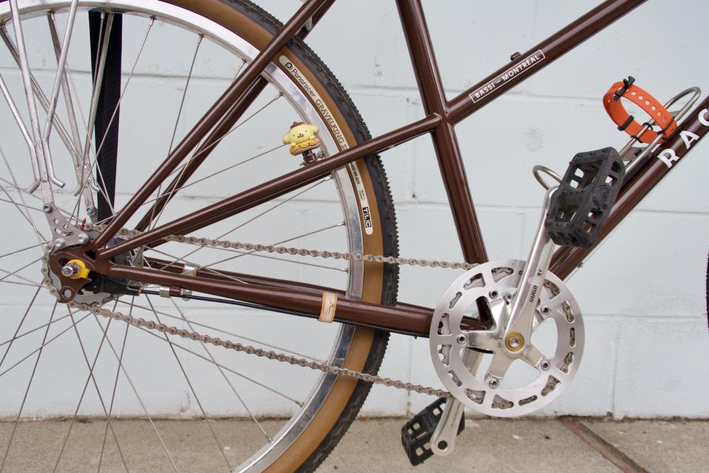 Hand-built wheels, some custom laser cut stainless/titanium parts for the rack mount.